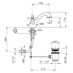 В комплекте с донным клапаном, краниками и трубками для подключения в цвет смесителя