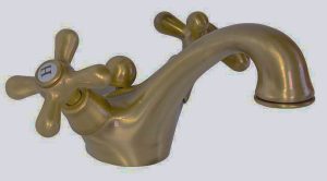 Смеситель на умывальник Цвет — состаренная бронза. Рукоятки в виде круглых крестиков. Старая цена: 770 р. Новая цена 380 р.