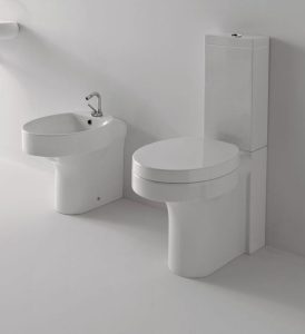 Комплект из трёх предметов- Унитаз со смывным бачком и сиденьем + биде напольное + умывальник 500 x 450 мм